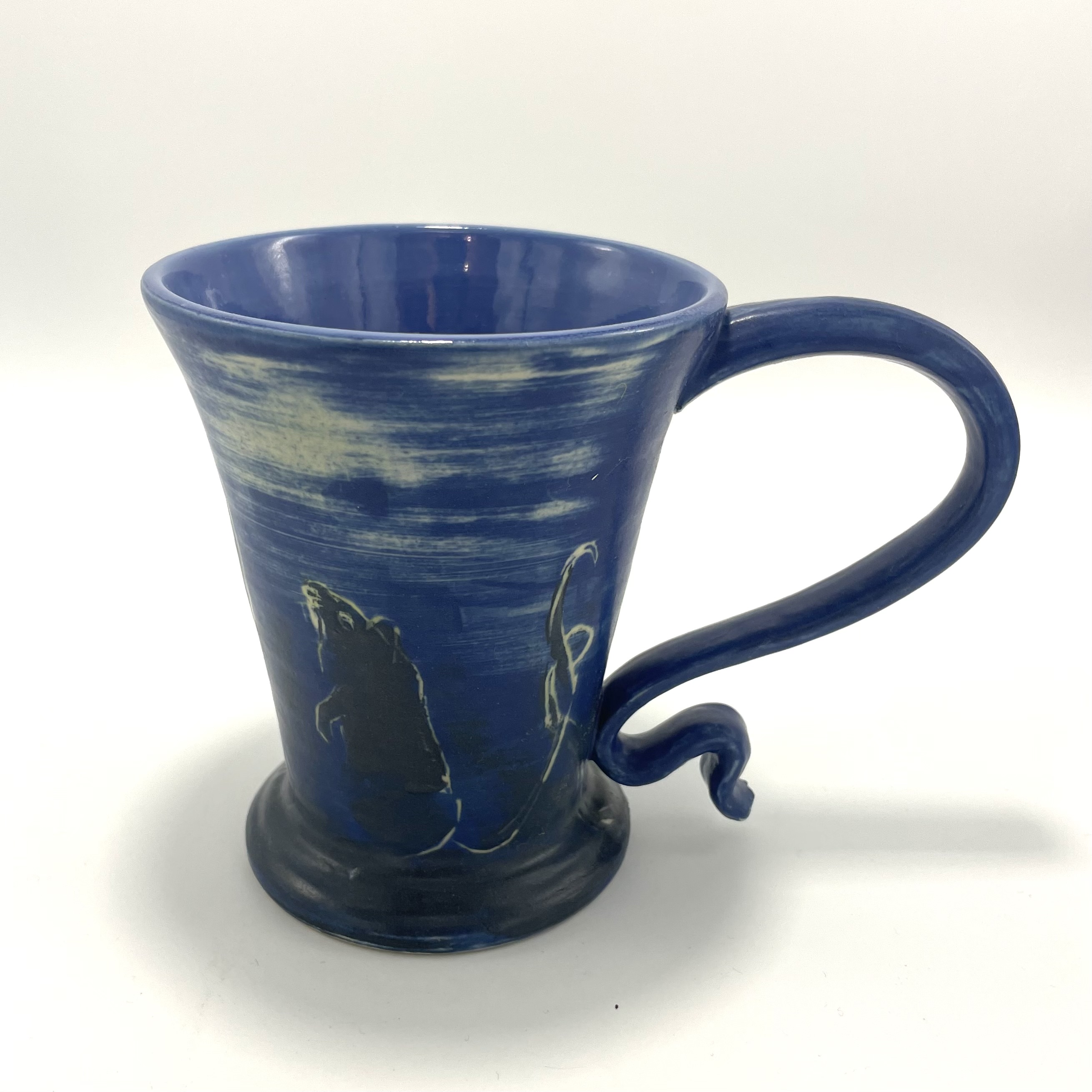 Introducing the Call of Mice mug, a unique blend of charm and functionality. This piece features a soft, matte finish that feels smooth to the touch. The calming blue base is playfully adorned with black mice designs, with carved outlines adding depth and character.